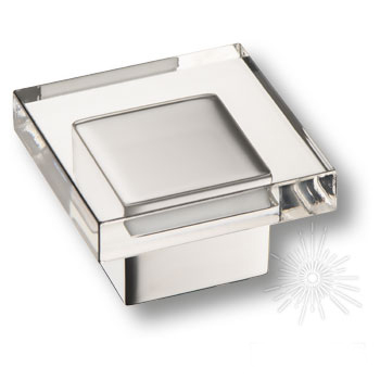 Ручка кнопка 15.383.40.07, материал Замак Оргстекло, отделка Хром Стекло, 40*40 мм