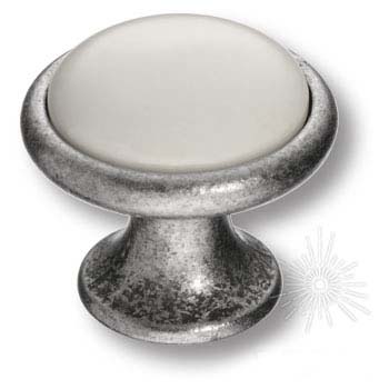 Ручка кнопка 3008-80-000, материал Замак Керамика, отделка Серебро Керамика, 30*d=35/22 мм